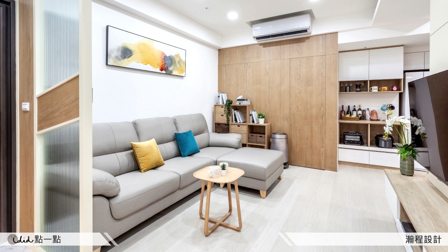 此次設計定調為簡約風為主、北歐風為輔,捨去多餘的軟件裝飾,以實用的收納機能為主體。為了讓格局配置更加符合屋主的居住需求,因此拆除兩面隔間牆,一來客廳主牆增大,二來化解原先大門對到主臥室門的風水疑慮。