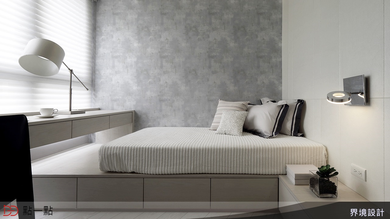 架高地板作為床榻是目前小空間的流行趨勢,下方可增加收納空間,還能明顯分界臥室的使用區塊。