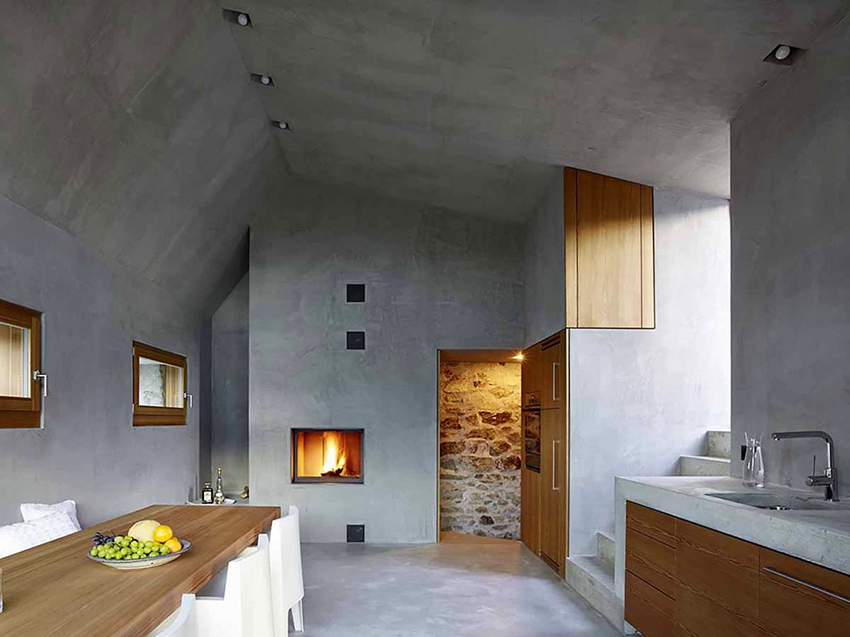 在維持傳統建築外觀的基礎下,做整體的改造及生活機能的強化,是所有來到古老城市的建築師須面臨的挑戰。這件位於瑞士古老鄉鎮的住宅,近期由Wespi de Meuron Romeo Architects改造,是一個成功保持其悠久歷史的現代化案例。透過維持大部分老石牆結構,並用水泥取代常見的木地板,設計師恢復了石頭住宅難以置信的魅力,並在其簡約的外觀上,加上了迷人的複雜性及神秘感。