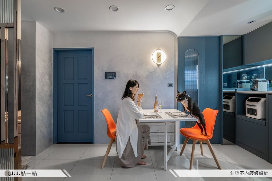 餐廳廚房區域,則呈現一個時尚活潑的安排
