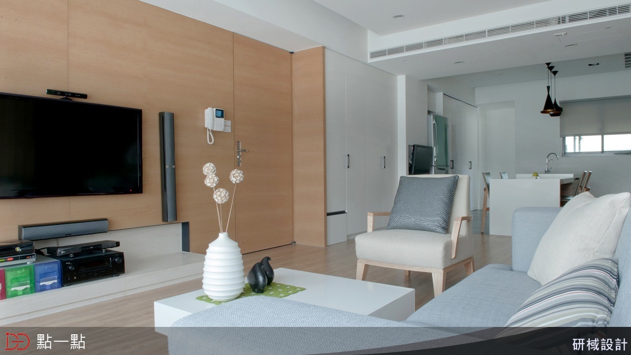 有良好的通風及採光,是最吸引人的居家空間;設計師將格局變動之後更強化這項優點,並以淺色系的素材在自然光輝映下更為耀眼,顯出溫潤質樸的效果。