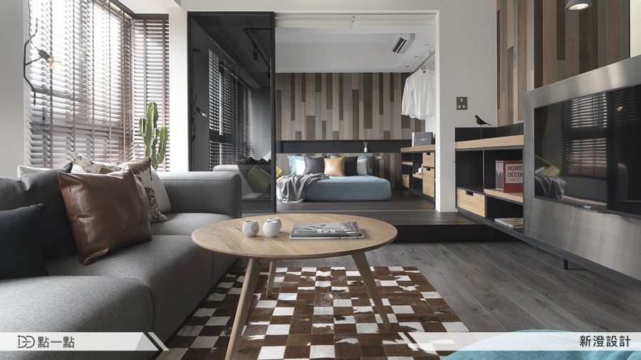 臥房則採以玻璃拉門規劃,以通透彈性的設計,讓公私領域隨時保有緊密的連結。