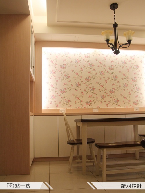 屋主希望回到家後能夠享受溫馨的氛圍,所以在設計方面,利用白色烤漆的線板與暖色的木皮搭配黃光,將整體空間以自然的鄉村風呈現出來。
