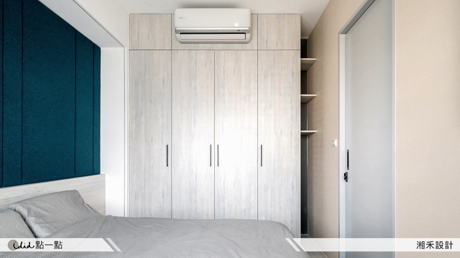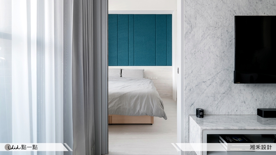 質感又帶點沉靜感的灰白色系裡,塗上一抹清新活力藍色調,像是凸顯出屋主身為律師的職業與性格。除了是一種專業之外,也涵蓋著對知識的探討及嘗試,以及可望生活中能有所創新!同時也讓整體空間多了更多層次的設計感。