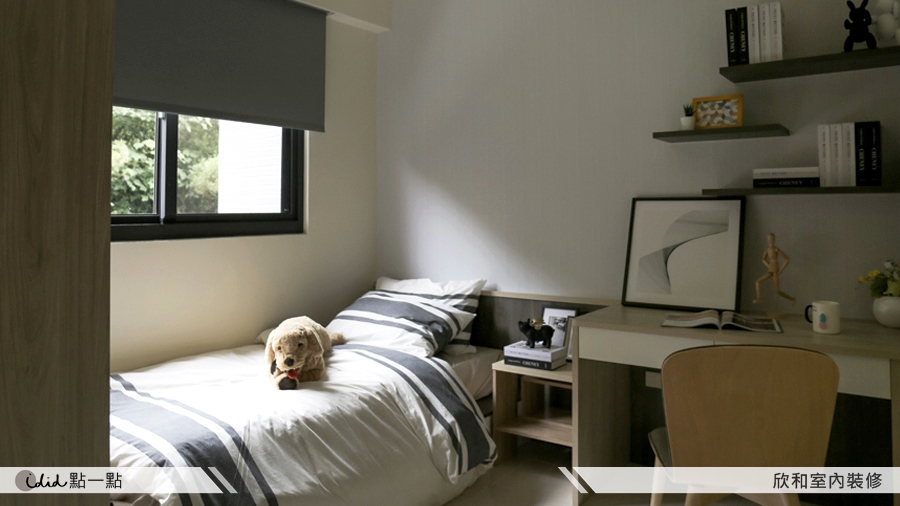 臥房選材以貼近自然的木質為主,不加以喧賓奪主的綴飾,延續回歸純粹的自然空間感。