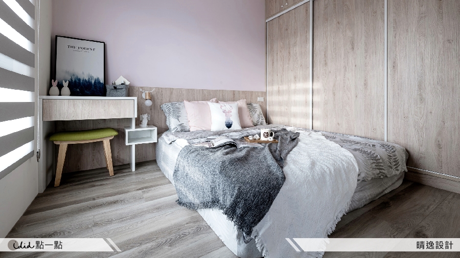 以淺木紋搭配大面積粉色塗料,營造甜美又浪漫的氛圍。