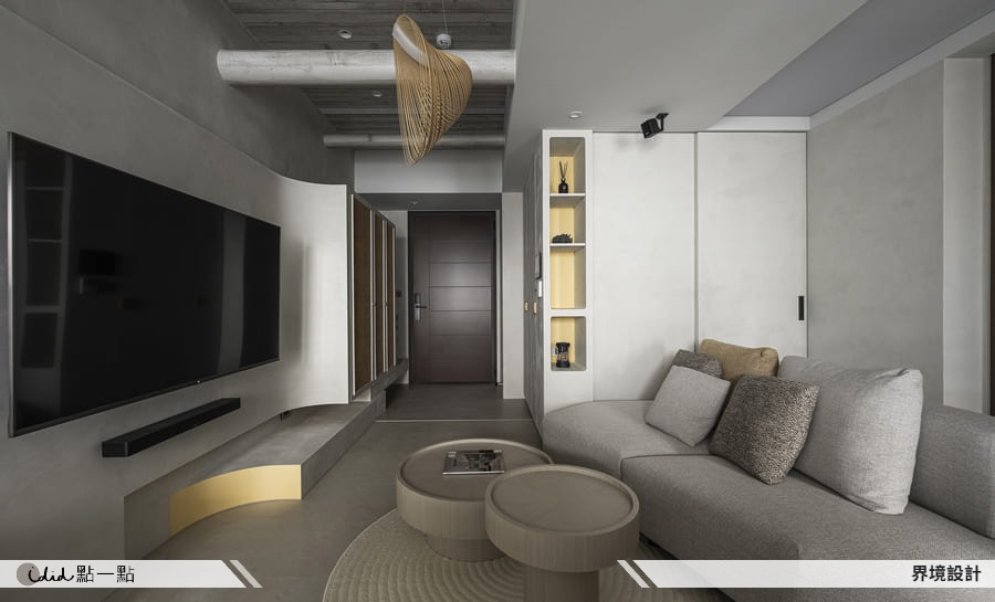 以柔光為語言,重構空間的情緒層次。透過藝術漆、藤編與霧化材質的交錯,讓光不再只是照明,而是流動的情感與界線。日光從縫隙滲入,模糊內外、虛實之界,形塑靜謐而含蓄的居住氛圍。空間在光影中呼吸,隱約中蘊藏生活的詩意與秩序。這是一處讓人緩步、沉靜的境地,回應現代人渴望內斂與安定的心靈場域。